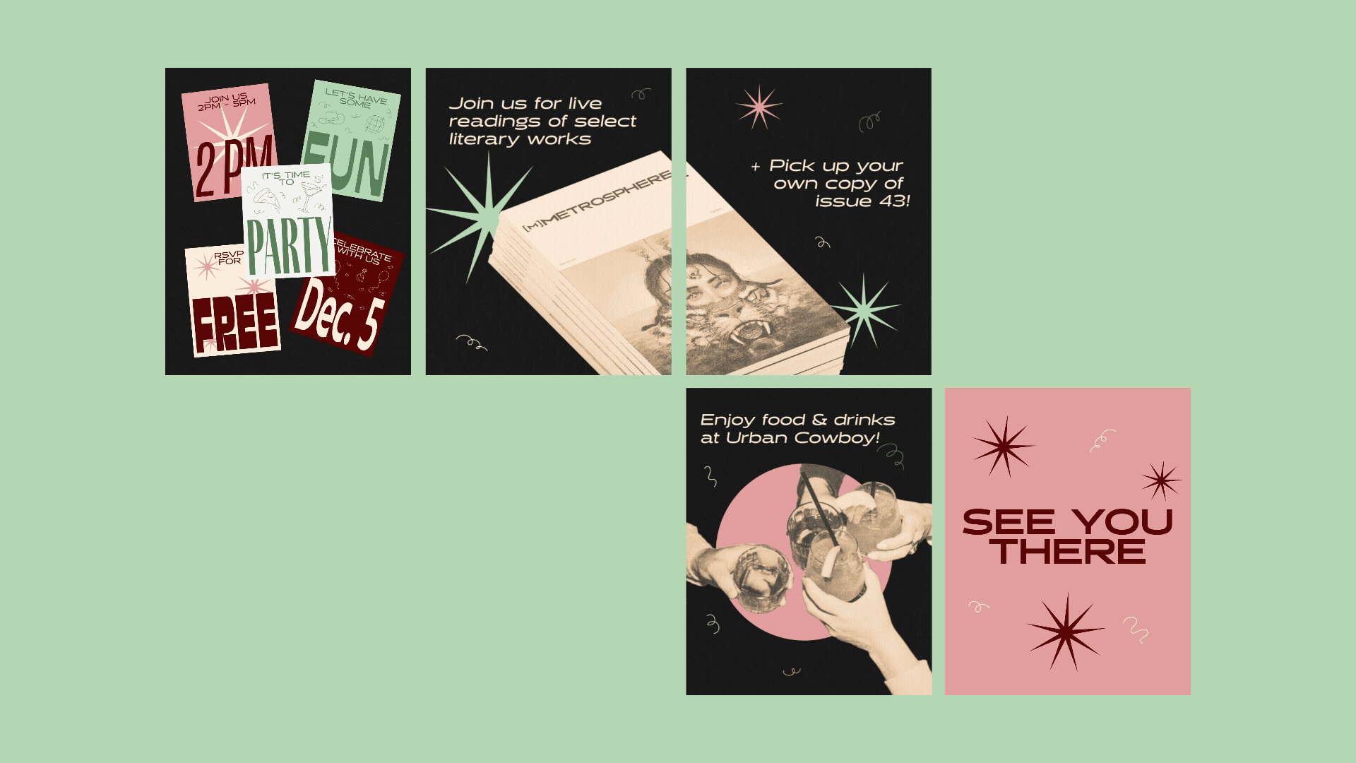 Rather than relying on traditional institutional layouts, I leaned into bold type, playful illustrations, and a collage-inspired approach to capture attention in fast-moving social feeds while building up Metrosphere's creative and outgoing feel.